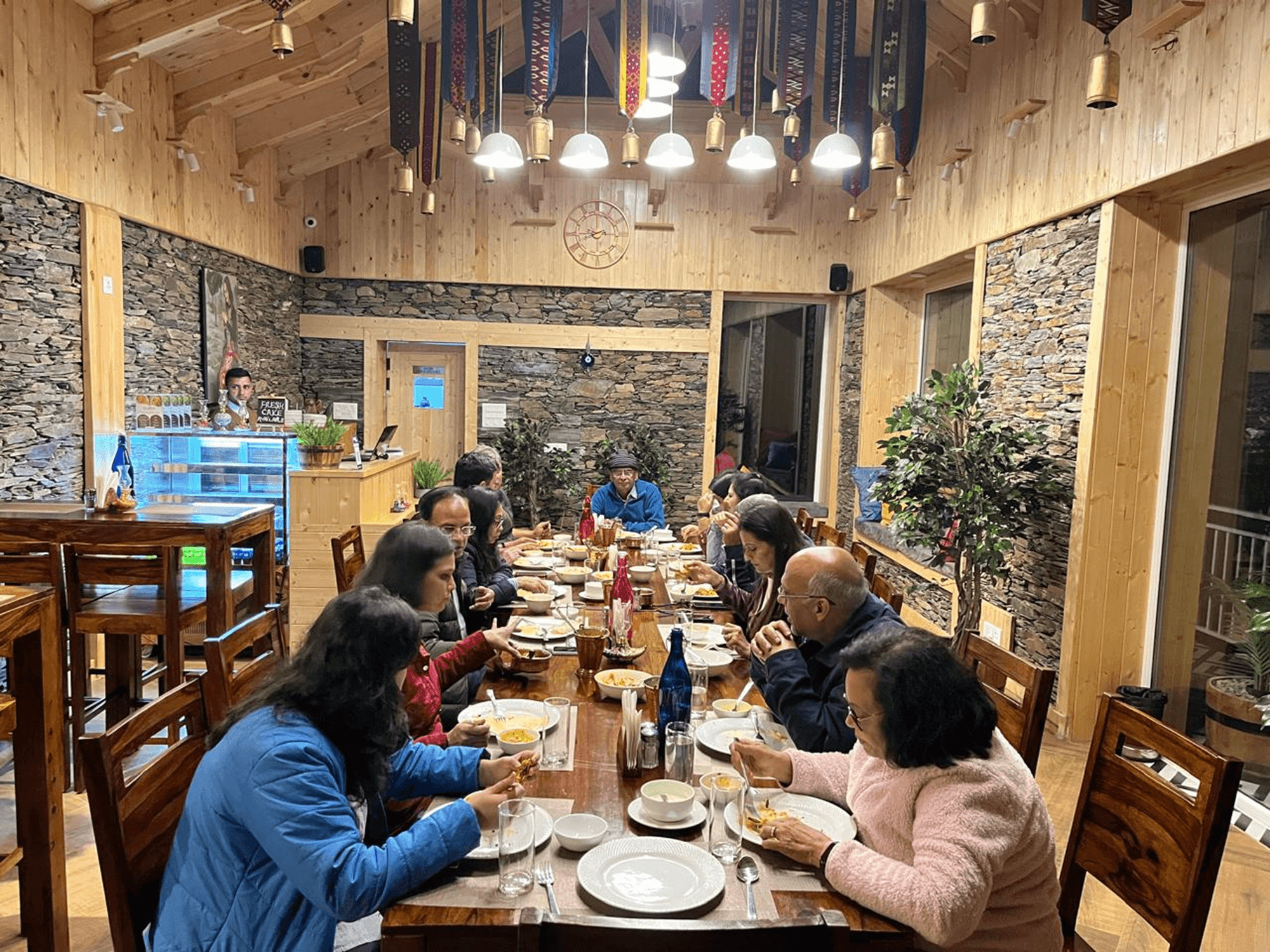 You arrive at Daafi, and almost immediately, something shifts. Maybe it’s the air, maybe it’s the mountains, or maybe nobody is honking at you anymore. The Daafi staff gives you the traditional Himachali welcome and you immediately feel at home. The Himachali vibe is totally vibing. Then you head for lunch at Bosho. You notice the decor, it’s undeniably Himachali with kullu patti and cowbell decor right above you. You and your gang finish up lunch and head to relax a bit. The view from the Bosho’s balcony is ethereal, chai and conversation feel different up here. You phones? They come out only to snap occasional pictures. Some of you find the game room, where things get competitive.